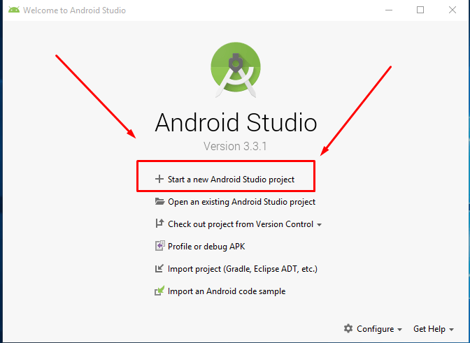 Step 2: So, the installation has is done then run it. Now click on the “start a new Android Studio project“.