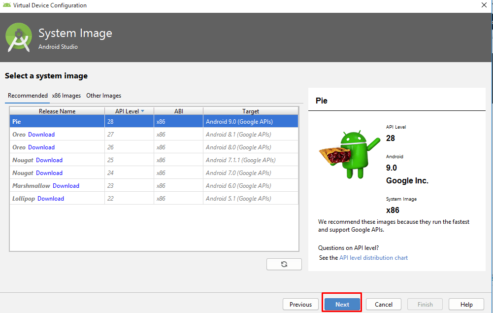 Download android Pie Step 9: When the system image for the android device is downloaded the next button will also enable, so, click on that and move to the next step.