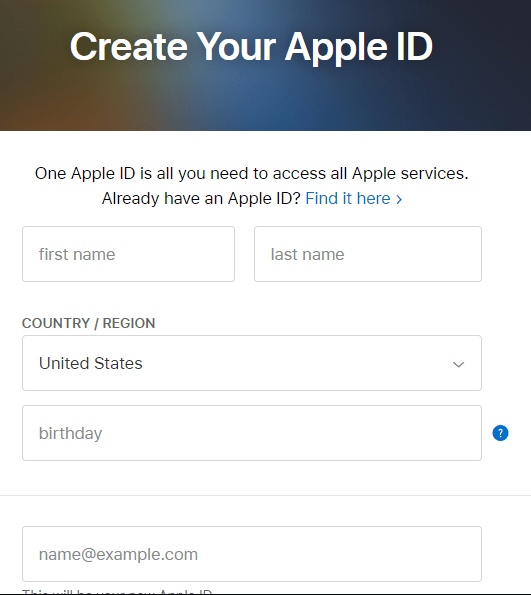 Step 3: Now, it is time to create an apple id with this yahoo email. Simply click on the link below to create an apple id.