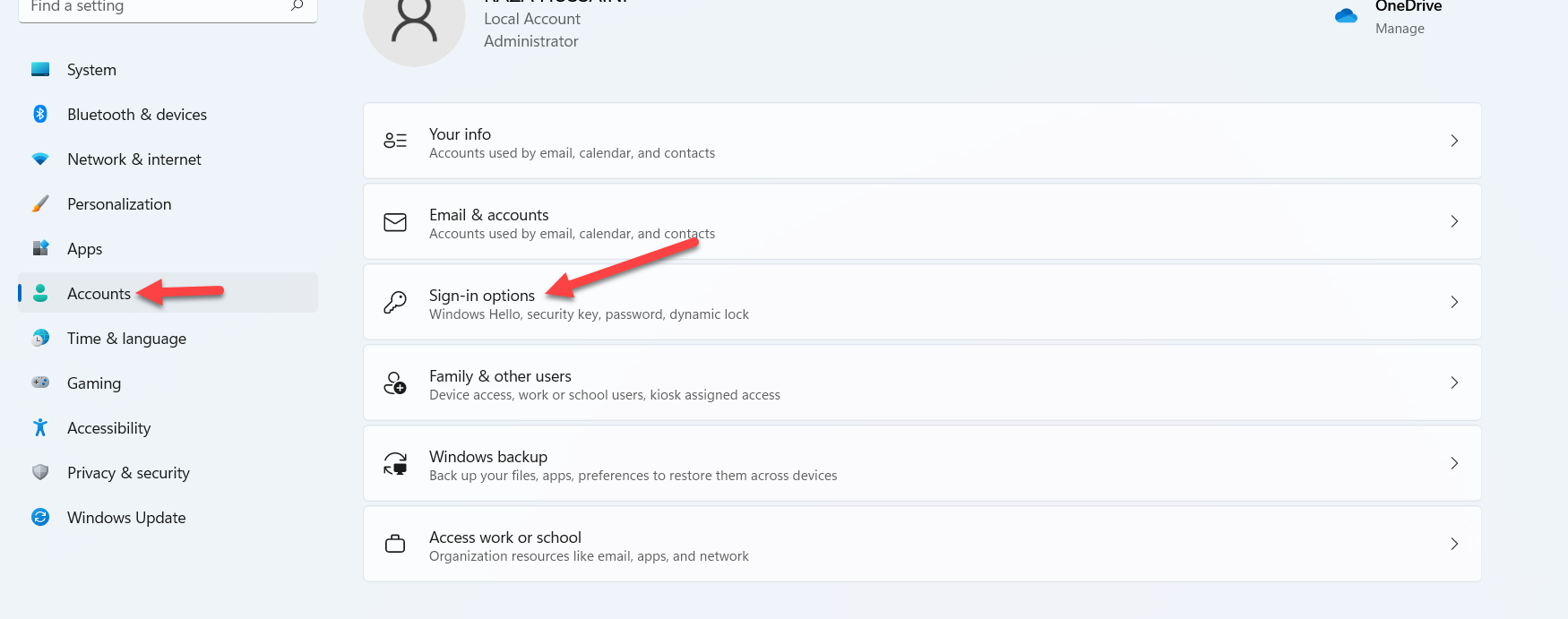 Step 2. Then go to the Account after that click on the Sign-in Options.