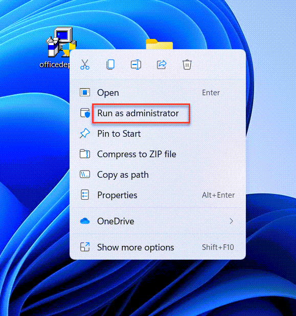 Office2021 Step 3. Next, run the office deployment tool as administrator by right-clicking on that.
