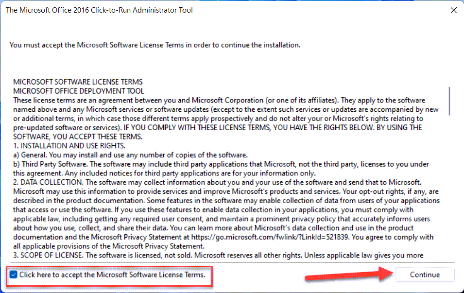 Run As Administrator Step 4. Now, check the box of Click Here to Accept the Microsoft Software License Terms after that click on the Continue.