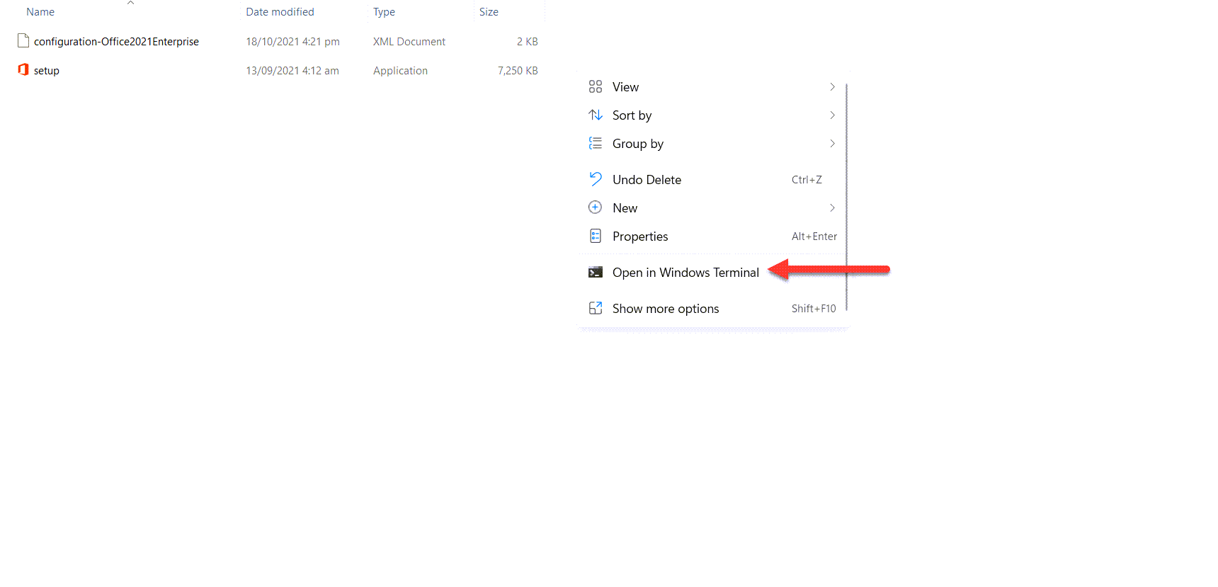 Step 11. Now, launch Office 2021 then right-click on the empty place then click on the Open in Windows Terminal.
