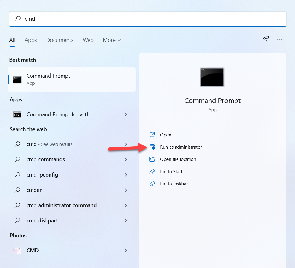 Step 1. Turn on your PC. Search for CMD and click on Run as Administrator.