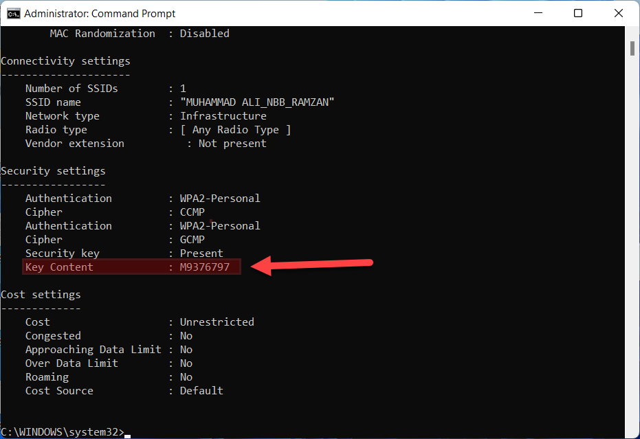 Method 1. Find Wi-Fi Password on Windows 11 using CMD (Command Prompt)