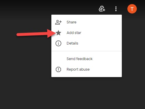 9. On the starred window, you will see the file which you have starred, right-click on the file. A menu will be appeared and click on the Add shortcut to drive.