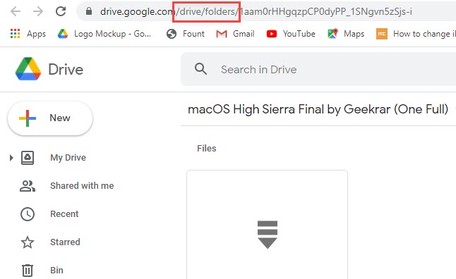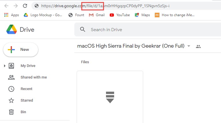 3. When you find out the file which you want to download, head over towards the address bar, select the drive/folders part of the URL and remove that.