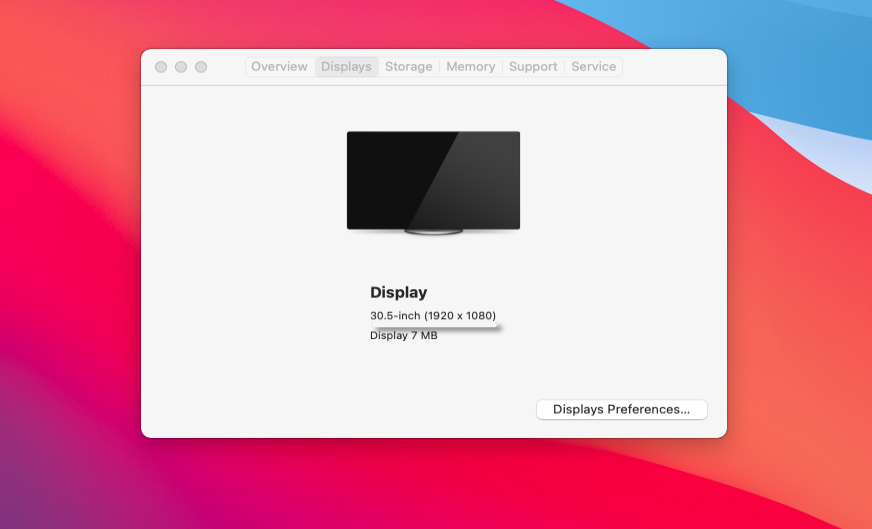 Start Click on the Apple logo from the left corner of the screen and select About This Mac. From the Display tab, you will probably see your new screen resolution.