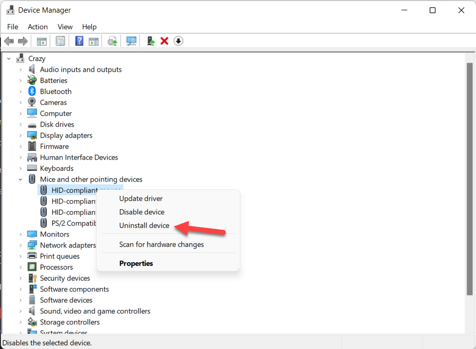 Double-Click on the Mice and Other Pointing Device Step 3. Now, right-click on that mouse that is not working then click on the Uninstall Device.