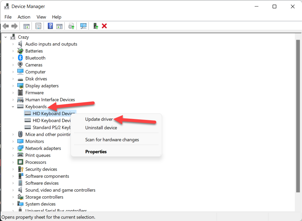 Step 2. After that double-click on the Keyboard to open the drop-down then right-click on drivers that are having problems, and click on the Update Driver.