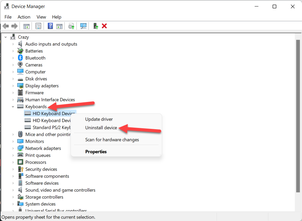 Step 5. Next, double-click on the Keyboard then right-click on the not working keyboard after that click on the Uninstall Device.