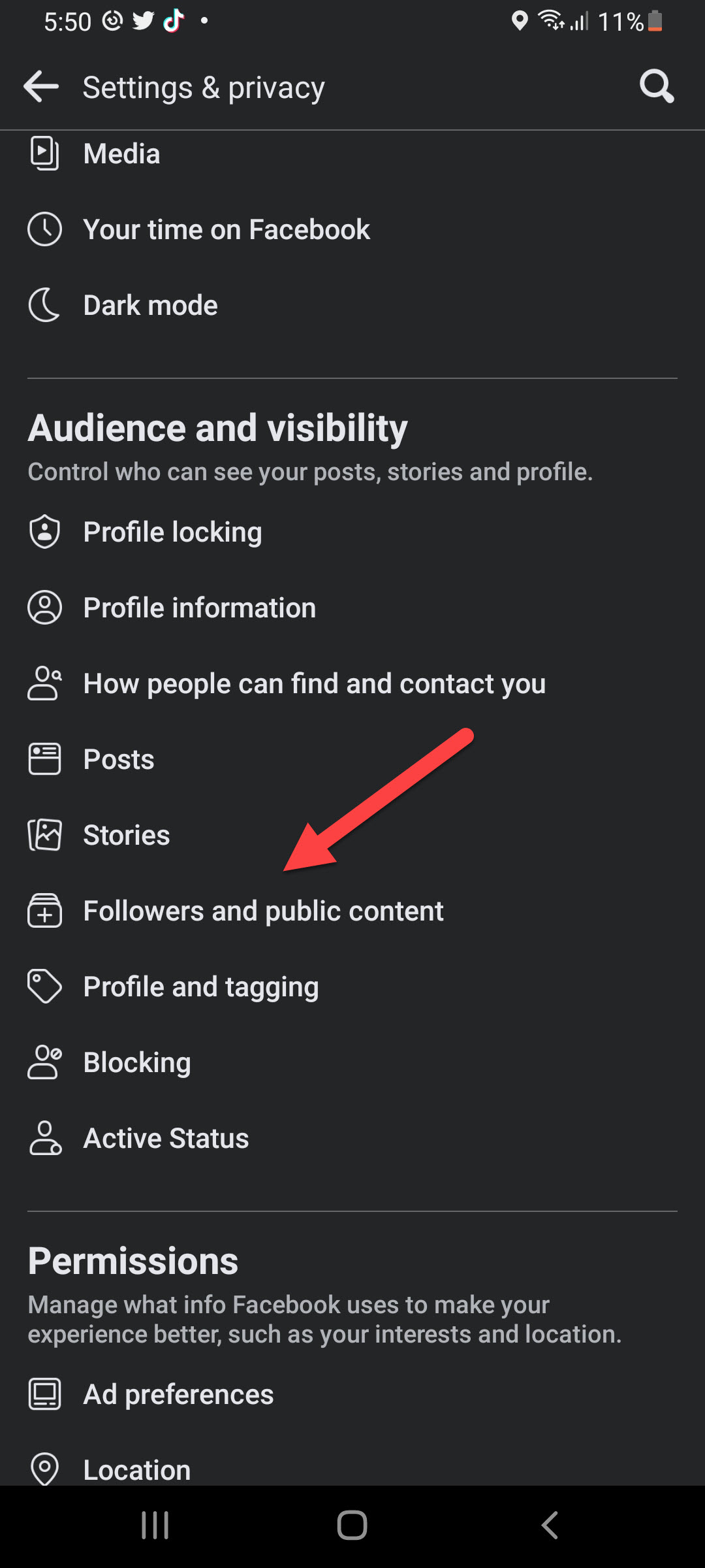 Select Settings Privacy Step 3. Now, go to the section of audience and visibility then click on the Followers and Public Content.
