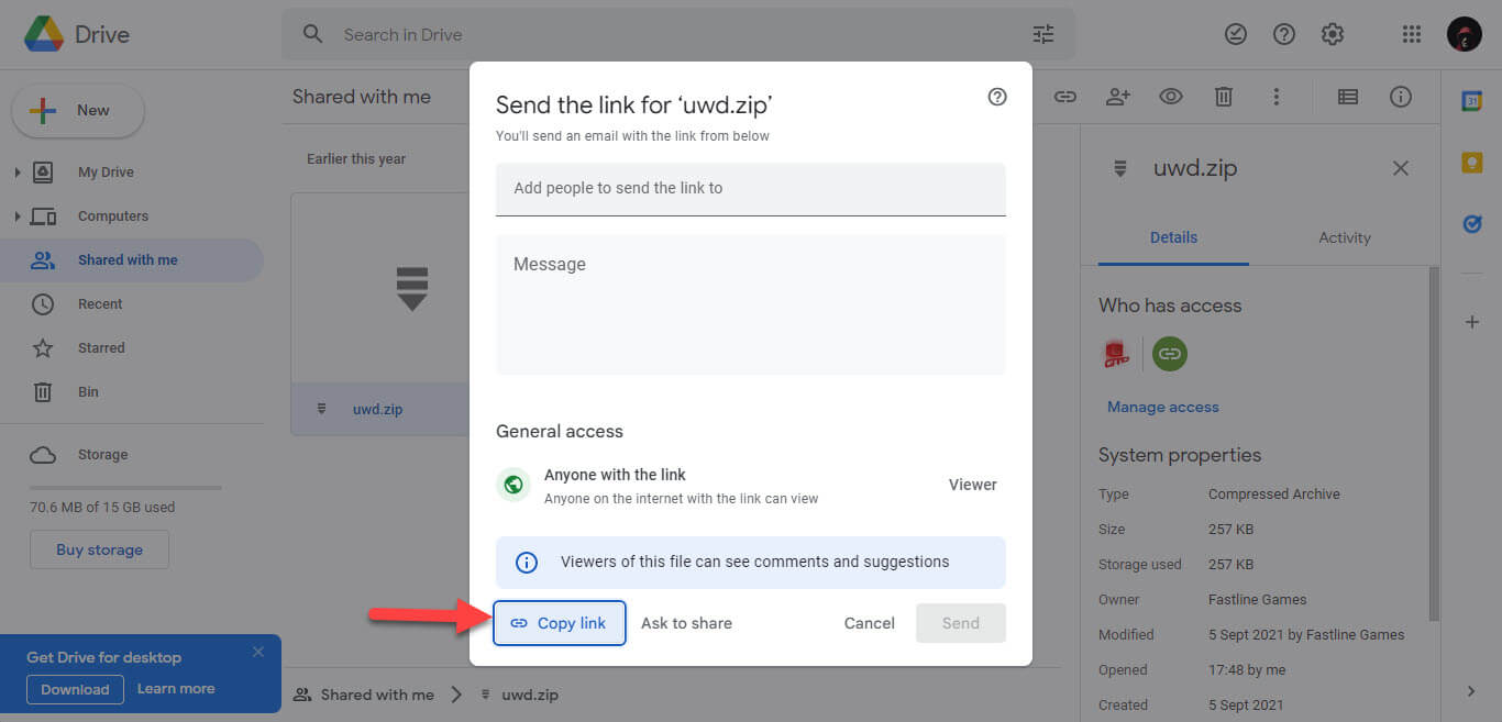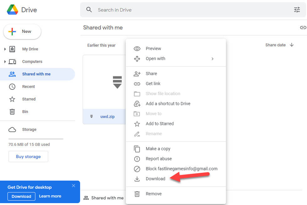 Step 1. First of all, you need to find that file which you want to download then right-click on it after that select Get Shareable Link.