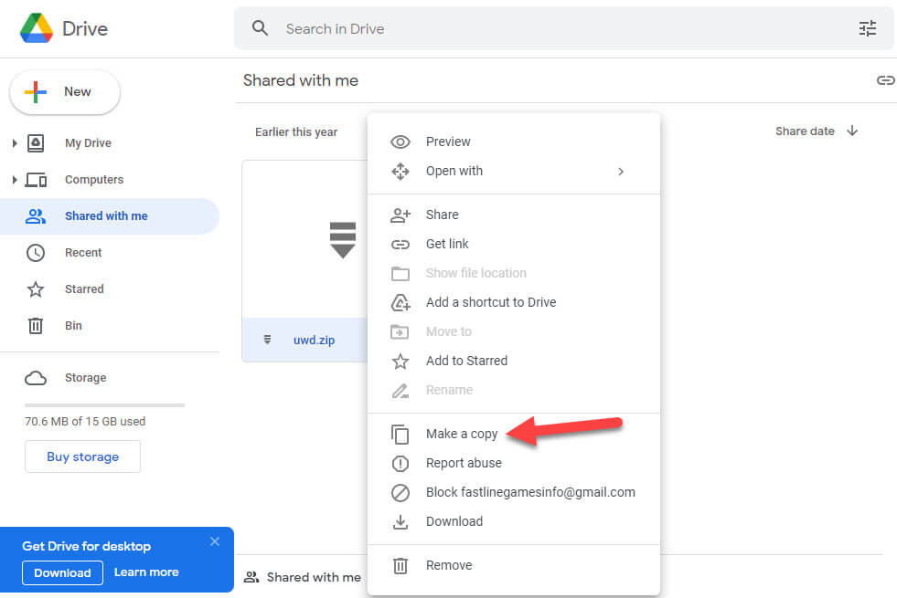 Tap on the Make a Copy Step 6. It is the time that you have to try to download the file then right-click on the file after that select Download.