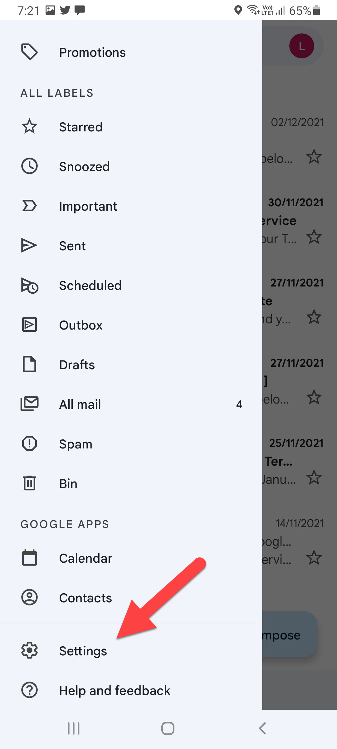 Click on the Settings Step 4. Choose your Gmail account.