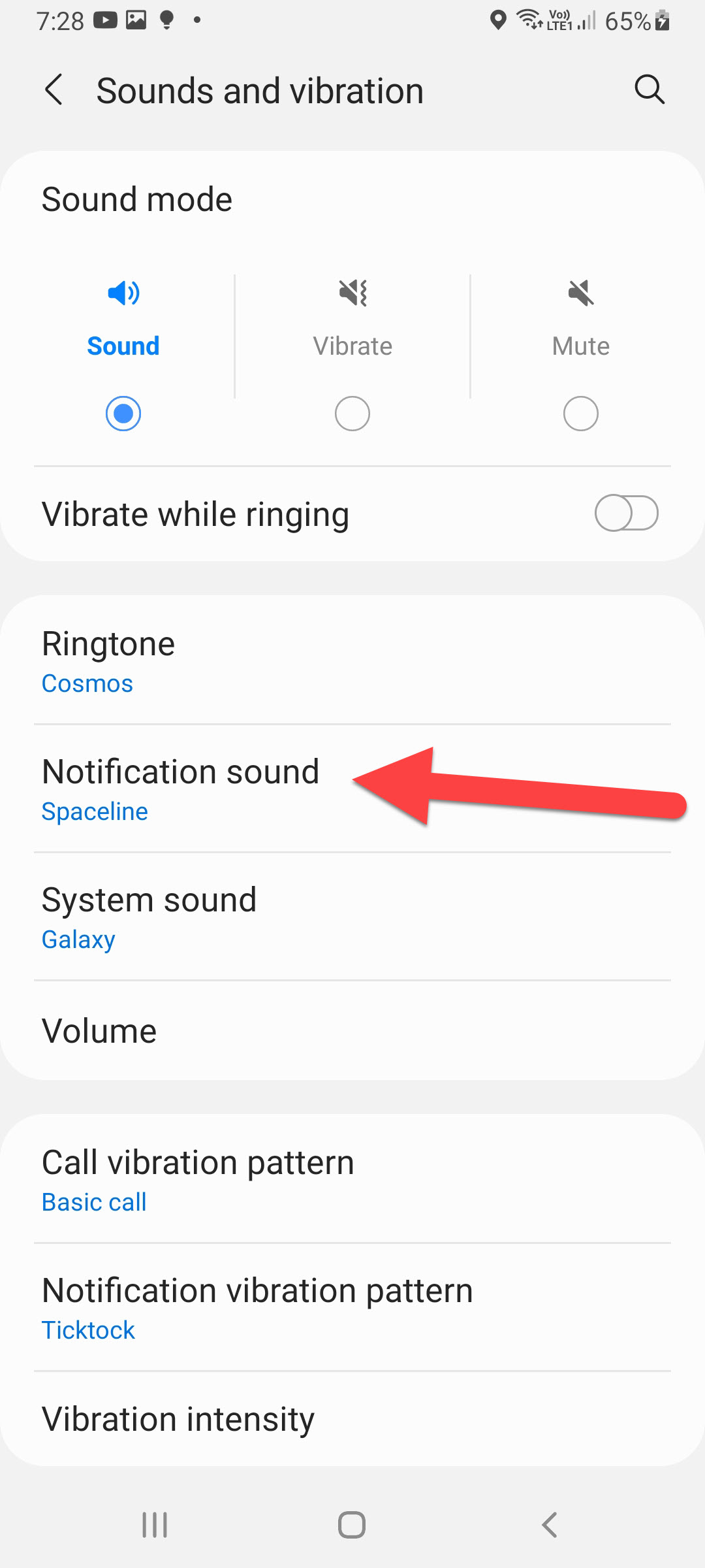 Sounds and Vibration Step 3. Click on the Notification Sound to continue the process.
