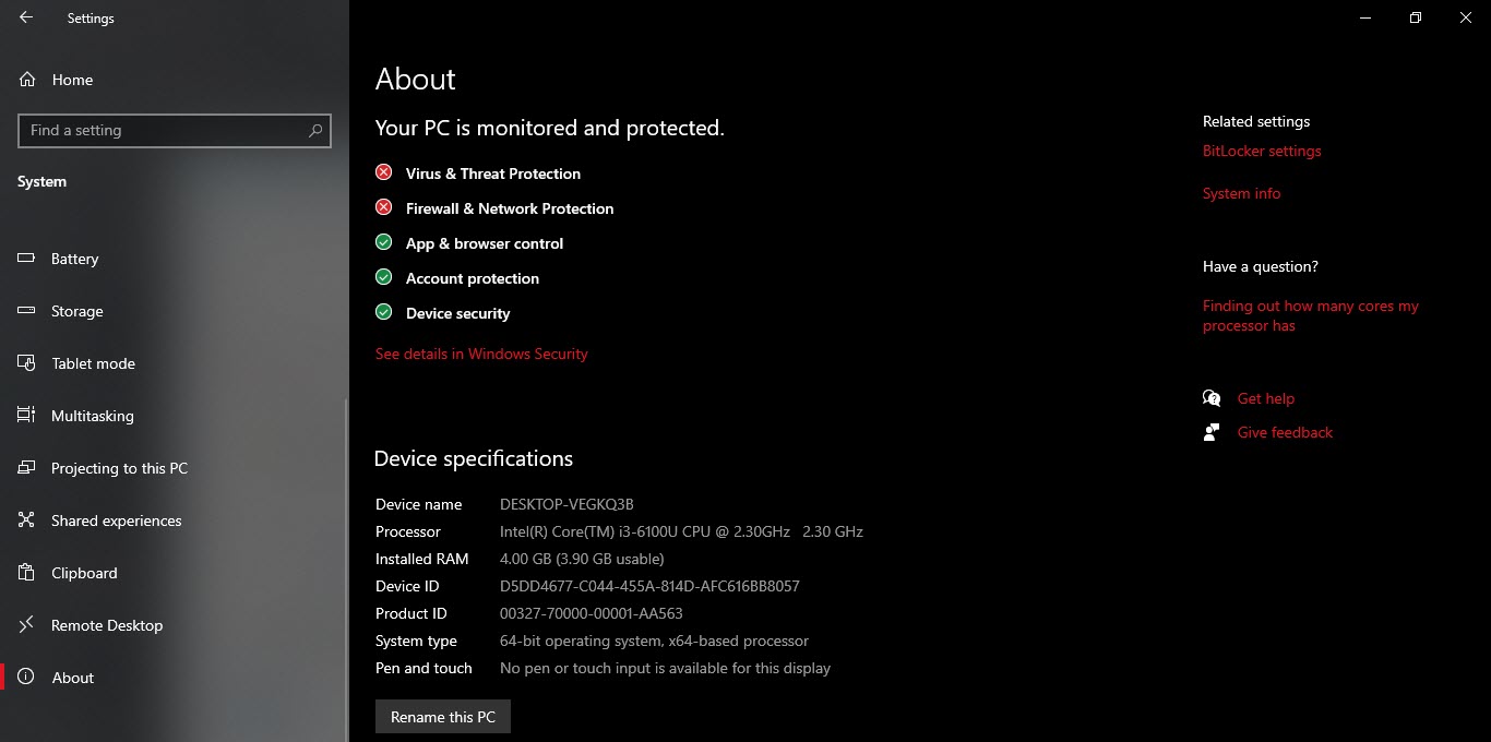 This is another easy and best method to see your system information. From the settings when you reach them you will see Device ID, Processor, RAM, Product ID, System Type. To check your system information just open your Settings then click on the System after that tap on the About on the left side then you will see your system information.