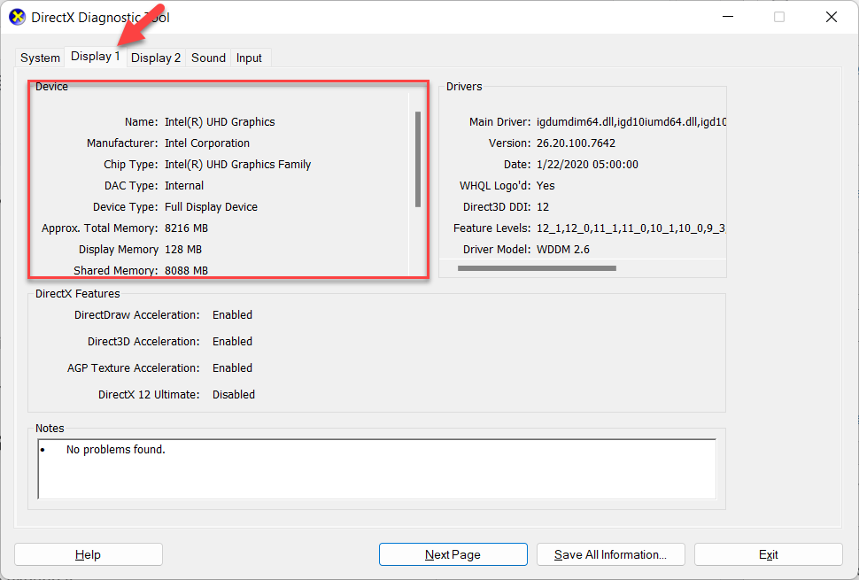 Step 3. However, go to the Display tab to get more information about the graphics cards.