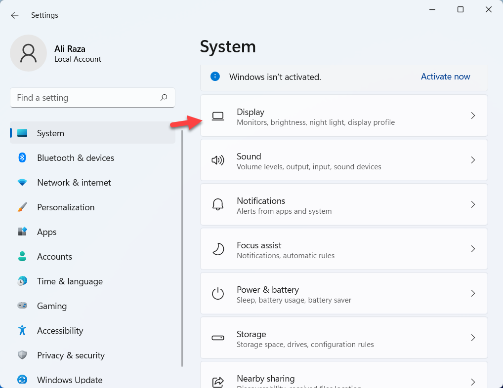 Settings Step 2. Once the settings are successfully open then click on the Display from the right side.