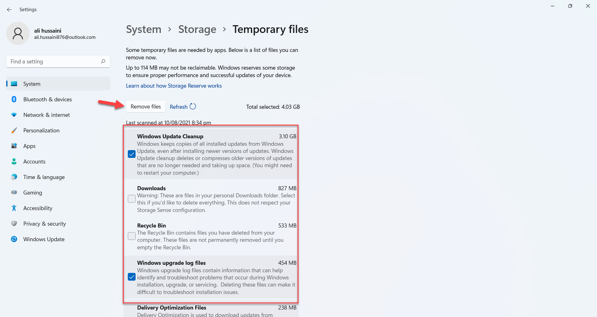 Click on the Temporary Files Step 3. Now, you will see the list of files that you want to delete files after that tap on the Remove Files.