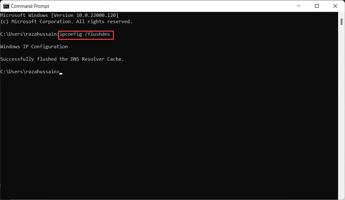 Follow This Command ipconfig /flushdns Step 3. When you paste the code in the command prompt then press the Enter button.