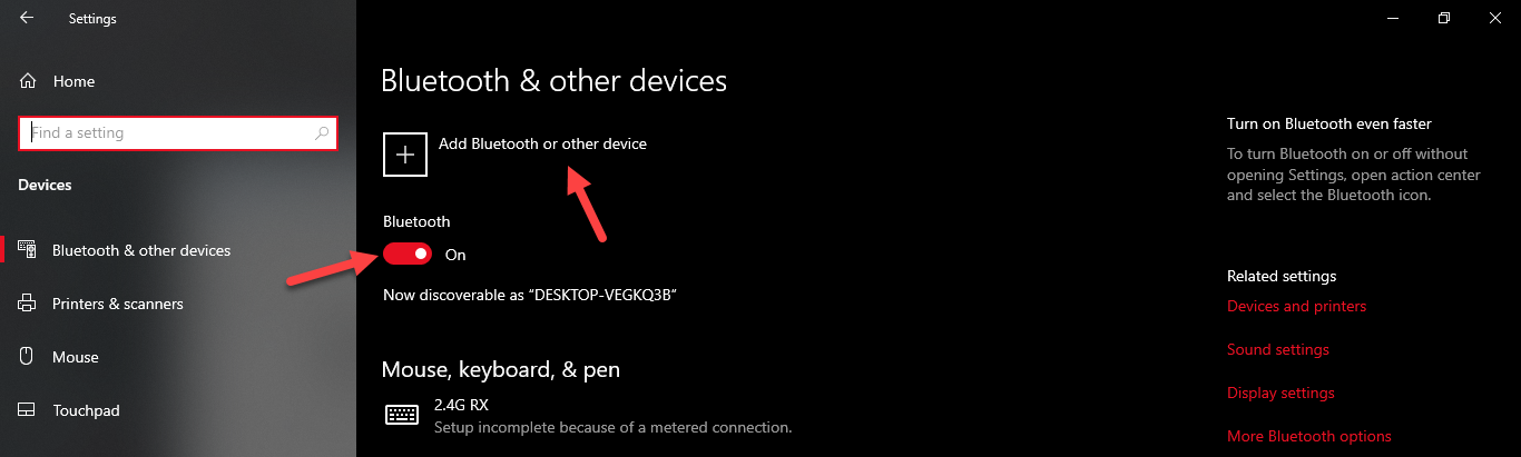Tap on the Devices Step 2. When the device is open then turn on the Bluetooth then click on the Add Bluetooth or Other Device.