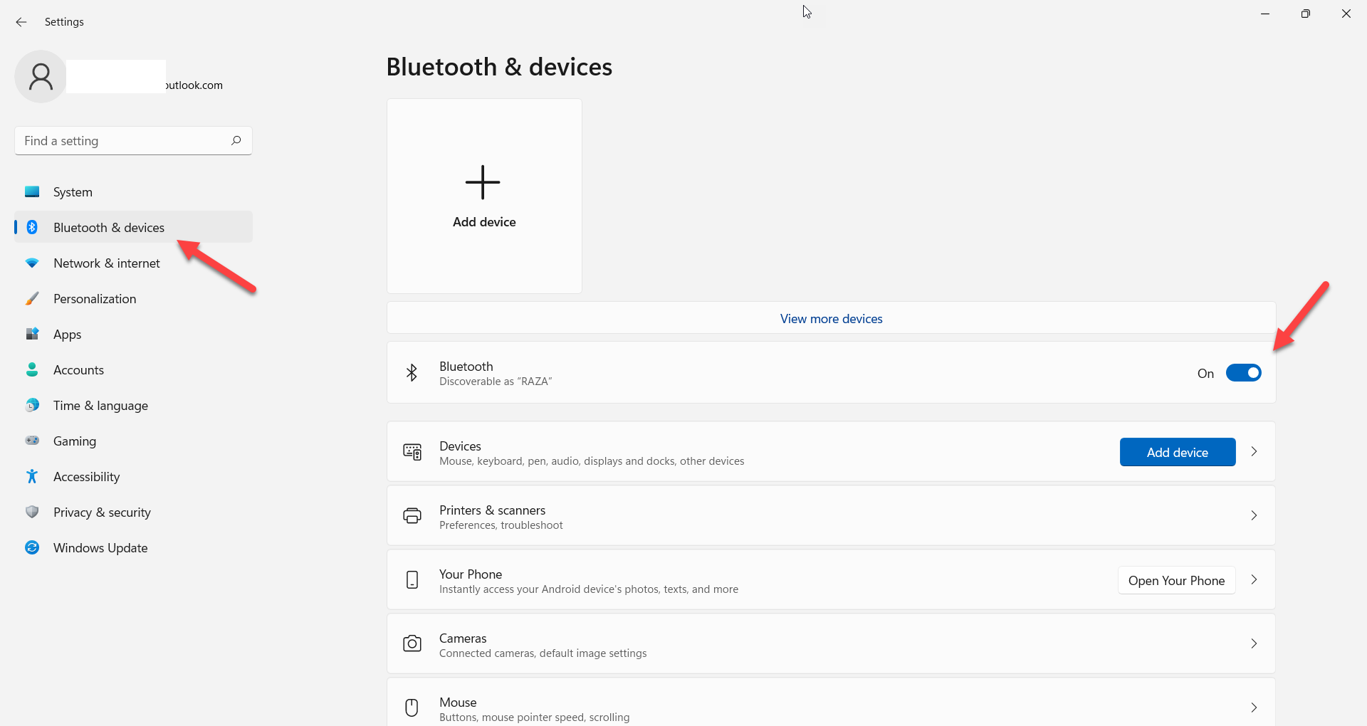Step 2. Go to the Bluetooth & Device from the left side.