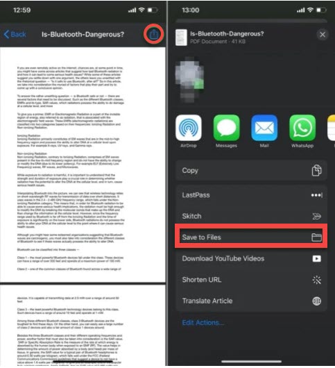 Step 4. After that, again tap on the Share icon and then tap on the Save to Files.