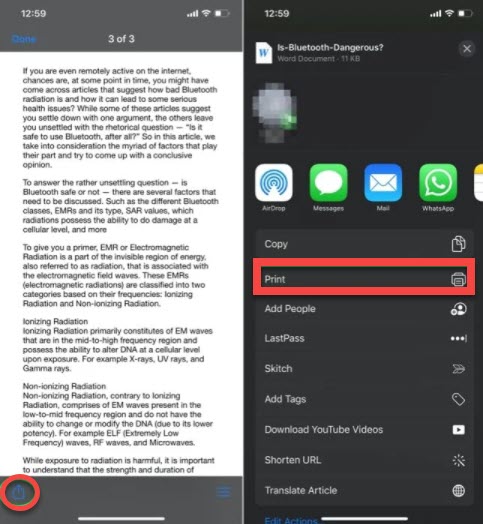 Step 2. Tap on the Share icon from the bottom left corner and select the Print option.