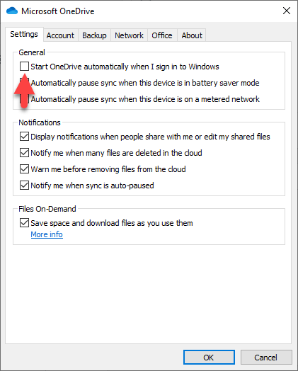 Step 4. Further, here you need to go to the Setting option then uncheck the Start OneDrive Automatically When I Sign in to Windows.