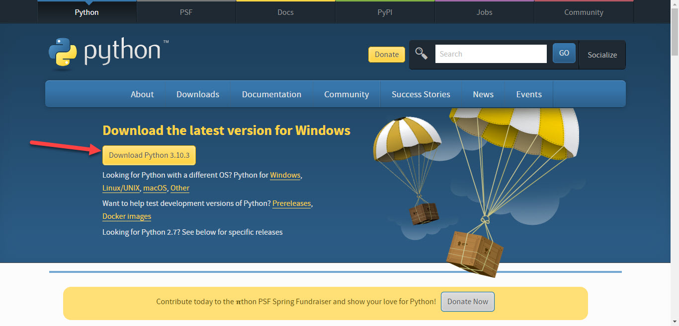 Step 2. Once the website is open then click on the Download Python 3.10.3.