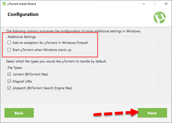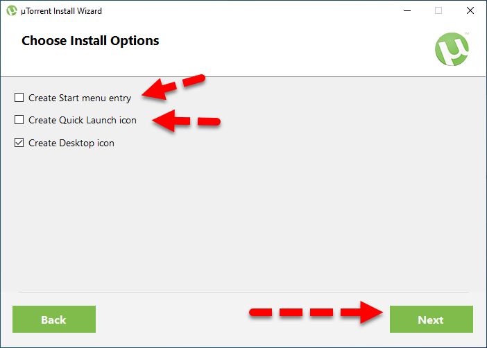 Choose Install Options Step 7. Then, you need to do some configuration with uTorrent. You need to untick the additional settings and click on the Next.