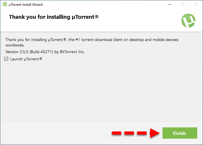 Configuration Step 8. Wait for the installation of uTorrent, once it gets done then click on the Finish.