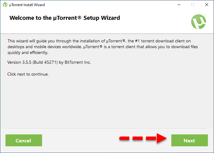 Step 2. Once the welcome screen of uTorrent appears, you need to click on the Next in order to continue.