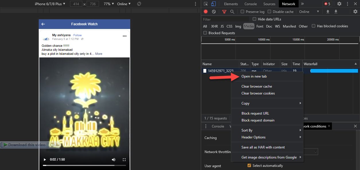 Click on the Media Step 5. Next, start the video then again stop the video then right-click after that tap on the Open in New Tab.