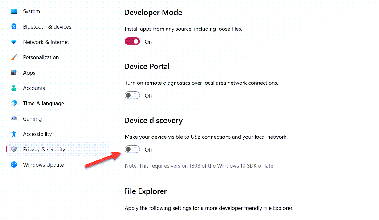 Step 2. After that head towards the Privacy & Security from the left panel and tap on the For Developers.