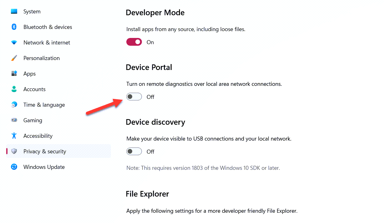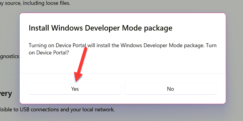 Tap on the Yes How to Enable Device Portal and Device Discovery