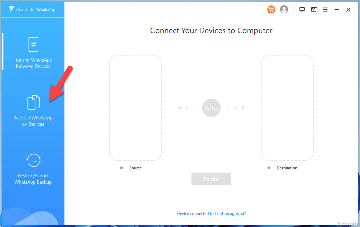 Step 1. Launch the app after installation then click on the Back Up WhatsApp on Devices.