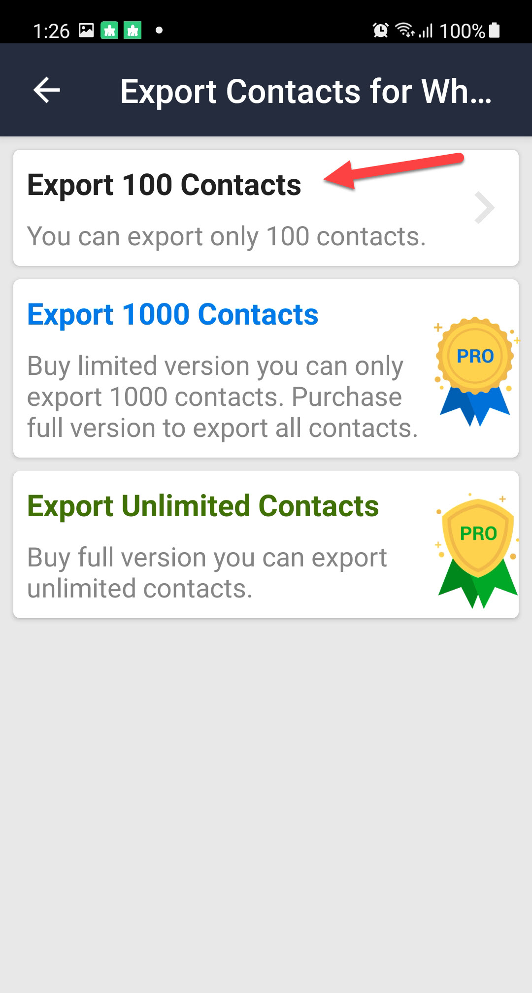 Export 100 - If you want to check the contacts before you export them then click on the View Contacts.