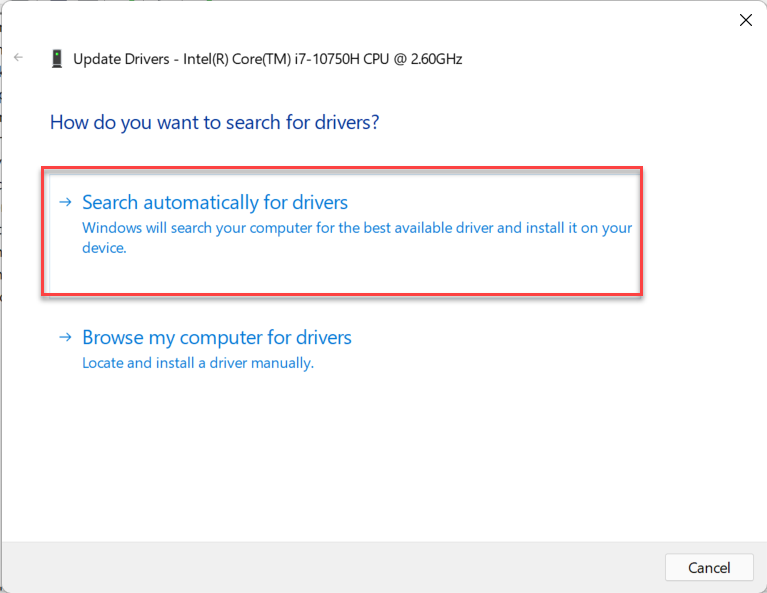 Update Driver Step 4. Tap on the Search Automatically For Drivers then the process will start to find the appropriate driver.