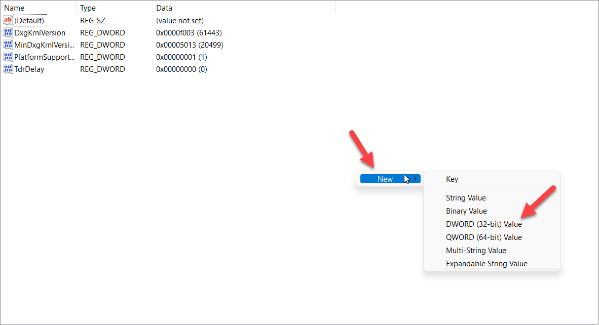 Step 3. Next, right-click on an empty portion then select New after that click on the DWORD (32-Bit) Value.