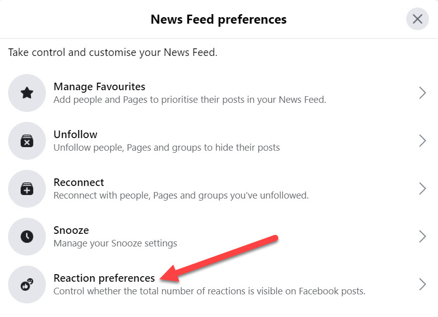 Click on the News Feed Preferences Step 4. Click on the Reaction Preferences.