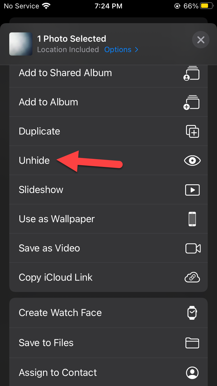 Tap on the Hide Photo Unhide Photos on iPhone and iPad