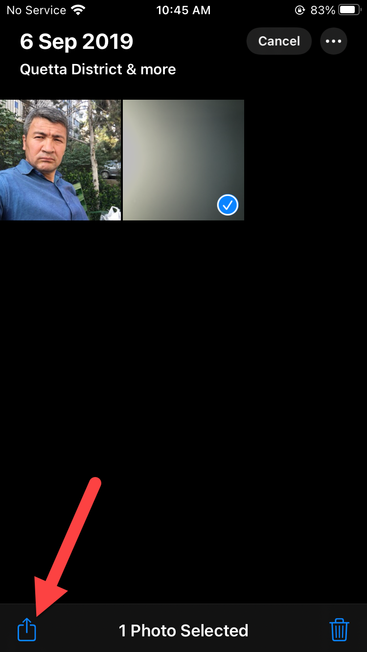 Step 2. When you select the photos then click on the Share at the bottom left of your screen.