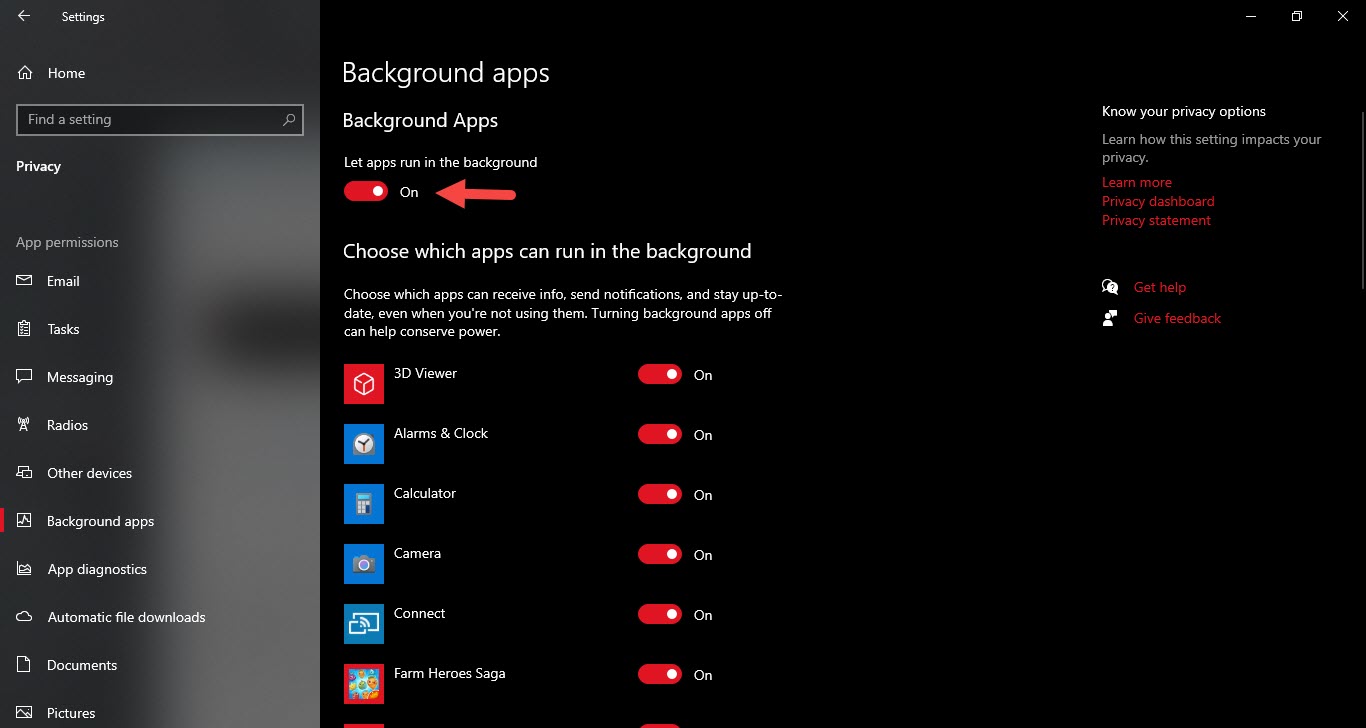 Click on the Privacy Step 3. Scroll down from the options then click on the Background Apps.