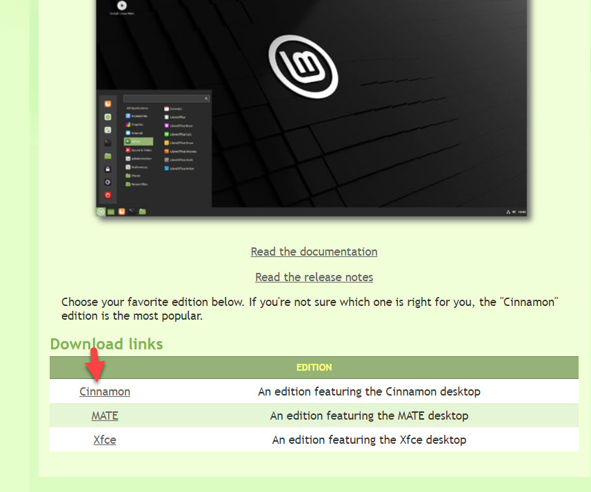 Step 2: If you want to download the Linux Mint click on the Cinnamon.