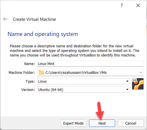 Click On The New Step 5: Write the name Linux Mint and then click on the Next.