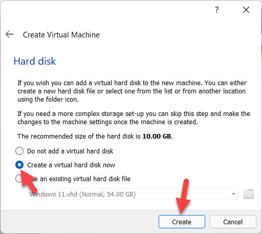 Click On The Next Step 7: Now, select the Create a Virtual hard disk now and click on the Next.