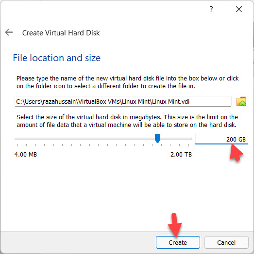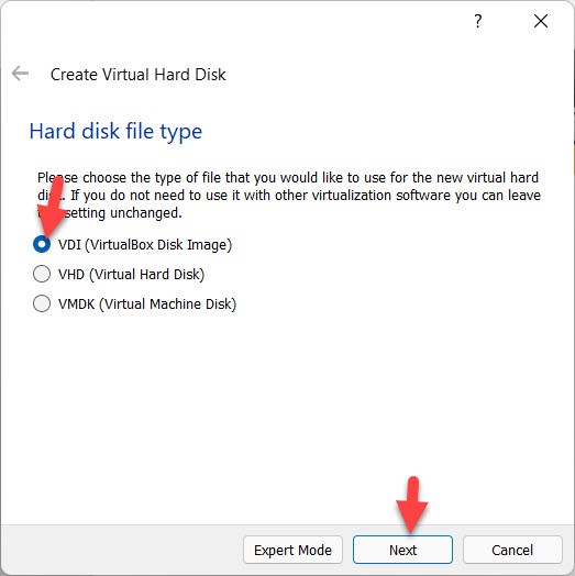 Click On The Create Step 8: Select the VDI (VirtualBox Disk Image) and click on the Next.