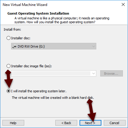 Typical Step 3: A new window will be opened, you need to choose guest operating system installation, you will have three option you have to choose I will install the operating system later.